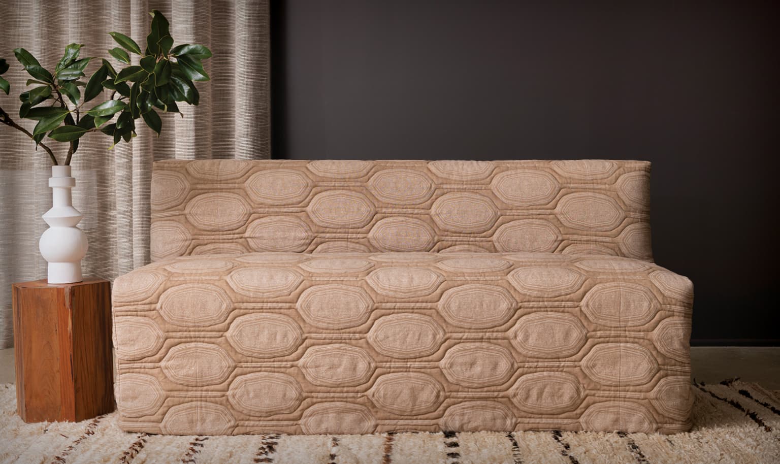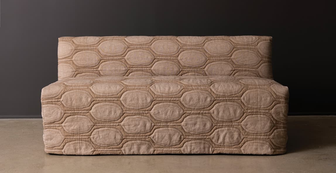 The Brighton Banquette combines a classic, clean, and simple silhouette with the warm tactical qualities of a textured slipcover, outline quilted in house. A successful combination of material and form allows for a soft and inviting piece that elevates any space.