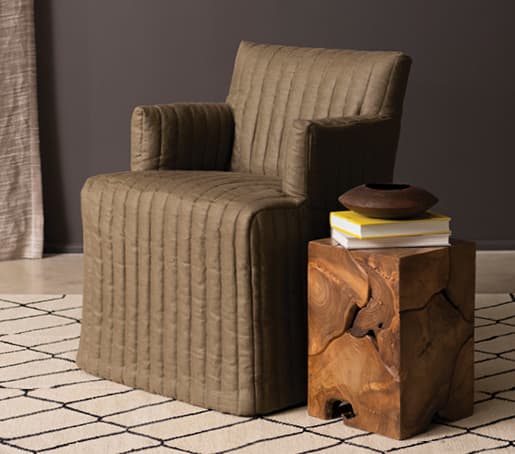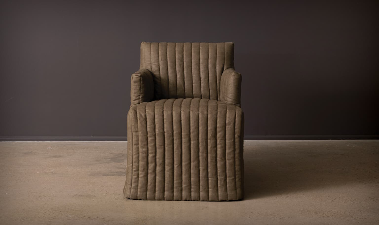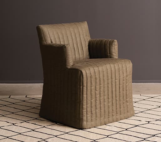 The Clairmont Dining Chair is suited for sophisticated evenings with close friends and associates. The upright character of the armchair is softened with an optional slipcover that adds an air of casual elegance to an otherwise poised piece.